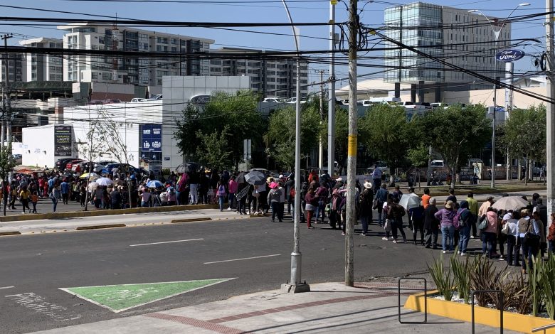 Los manifestantes optaron por formarse de nueva cuenta, pero ahora lo hicieron atravesando la Av Constituyentes en ambos sentidos, por lo que la vialidad continuó bloqueada mientras eran atendidos.