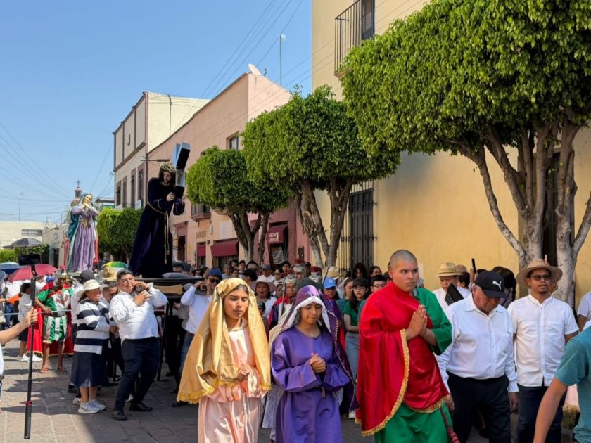 Miles de personas se dieron cita en el Centro Histórico del municipio de San Juan del Río, para participar en el tradicional Viacrucis, una de las expresiones religiosas más representativas de la Semana Santa.