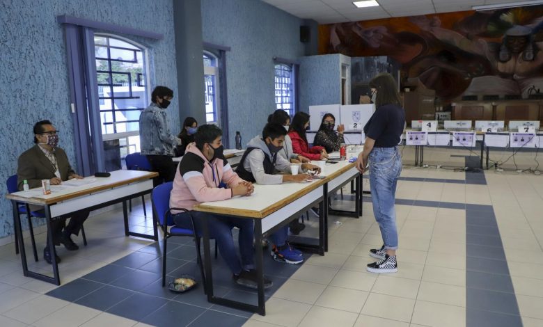 Estudiantes y docentes ejercen su derecho al voto durante el proceso de auscultación que se lleva a cabo en la Universidad Autónoma de Querétaro (UAQ), mismo que inició a las 8:00 horas y permanecerá hasta las 20:00 horas de este día, y que forma parte del Proceso de Elección de Rector(a) para el periodo 2021-2024.