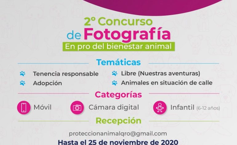 El Municipio de Querétaro, a través de la Dirección de Protección, Control y Cuidado Animal de la Secretaría de Servicios Públicos Municipales, realizará el Segundo Concurso de Fotografía en Pro del Bienestar Animal, con el cual se busca generar conciencia sobre la tenencia responsable de las mascotas.