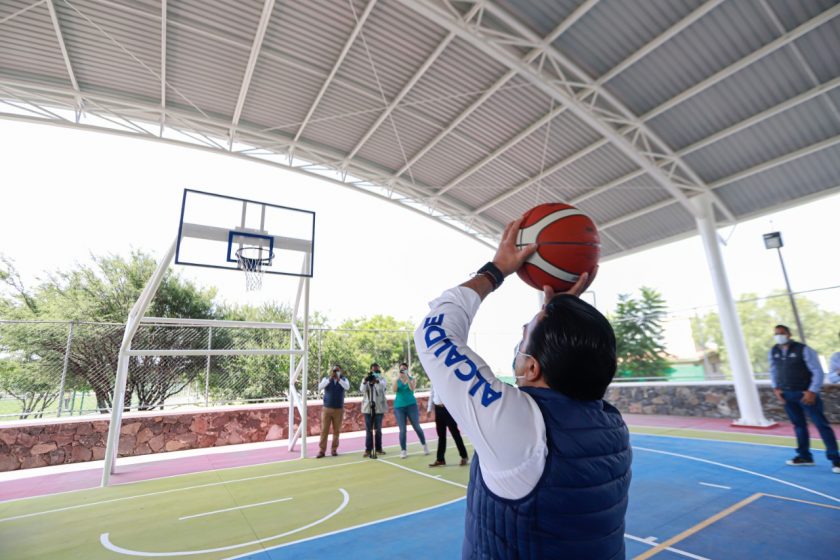 Entre los trabajos de rehabilitación destacan la construcción del arcotecho de la cancha de básquet, la rehabilitación de los módulos de baños sanitarios, se mejoraron 20 metros de la rejacero dañada y sustitución de dos puertas, así como la sustitución total del pasto sintético del campo de fútbol (cinco mil 975 metros cuadrados); se colocaron cuatro bebederos de acero inoxidable, así como los rehiletes de acceso.