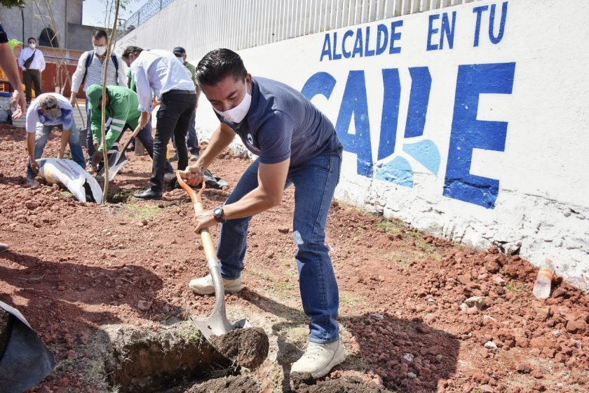 El presidente municipal de Corregidora, Roberto Sosa Pichardo, encabezó una jornada de reforestación en el área verde de la colonia Venceremos donde se plantaron 35 árboles de las especies tabachin, frutal y pata de vaca.