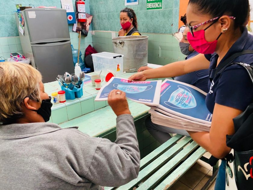 En la tarea de seguir promoviendo las medidas de prevención sanitaria que permitan seguir adelante con la reactivación de la economía local, la Delegación Centro Histórico, en coordinación con cámaras empresariales y comerciantes en general, realizó una jornada más de promoción del uso del cubrebocas, ahora en las inmediaciones del Mercado Hidalgo.